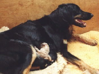 Unsere Hündin Sally vom Schondratal und ihre Welpen kurz nach der Geburt...