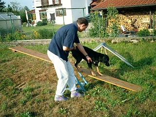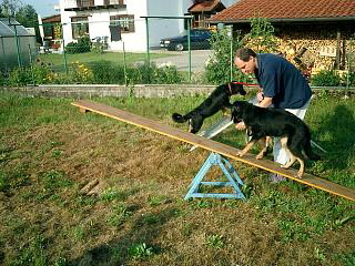 Mitten in die Prägungs- und Sozialisierungsphase fällt der Besitzerwechsel. Gemäss Zuchtreglement des RZV dürfen die Welpen nach vollendeter 8. Lebenswoche abgegeben werden. Wir glauben dass dies ein optimaler Zeitpunkt ist. Die Welpen können sich so leichter auf die neue Umgebung prägen und sich im neuen Rudel sozialisieren. Das Spiel mit den Geschwistern wird dann am besten durch Welpenspieltage ersetzt. Die Abwechslung oder den vielfältigen Sozialkontakt findet der Junghund dann später in einem geeigneten, kynologischen Verein bei mit Hundeerziehung als Begleithund, Schutzhund, Rettungshund, Obedience oder Agility.